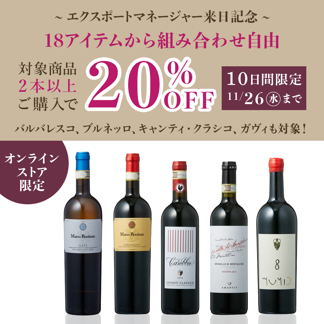 エクスポートマネージャーの来日を記念し、対象商品2本以上ご購入で《自動20%OFF》になるキャンペーンを開催します!