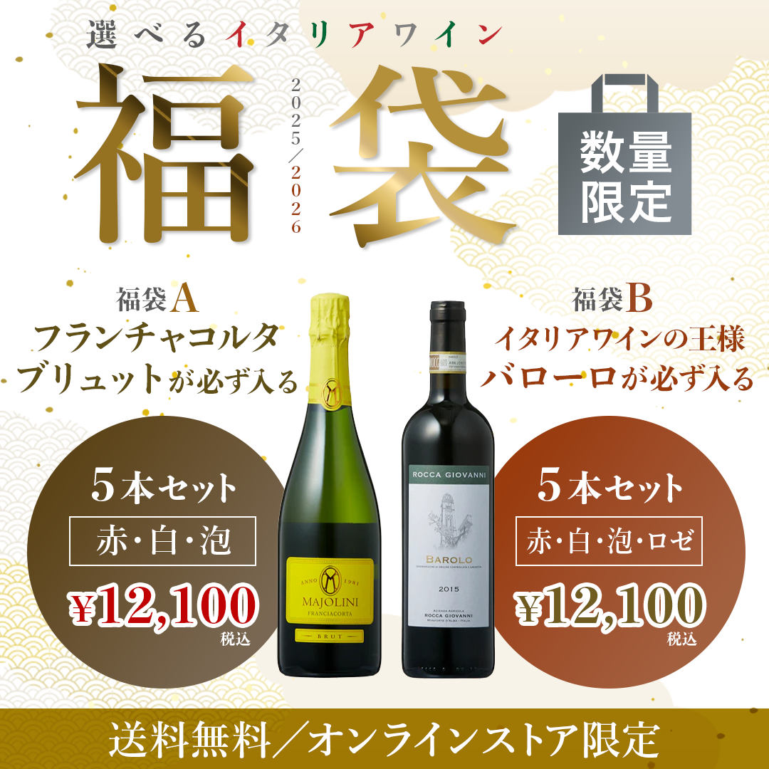 当店人気の フランチャコルタ・ブリュット または、イタリアワインの王様バローロ から選べる2種類のワイン福袋をご用意しました!